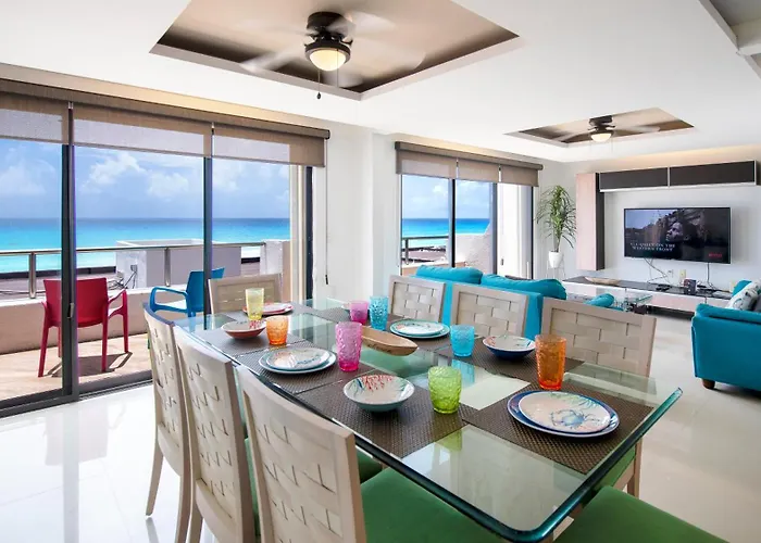 O Family Vacations Apartment Ocean View Cancún à beira-mar de 4 quartos oferece fácil acesso a locais turísticos como o Luxury Avenue Cancun, localizado a 6 minutos de distância a pé. Situado 400 metros da Playa Marlin, este apartamento hospitaleiro dispõe de terraço com vista para o mar.